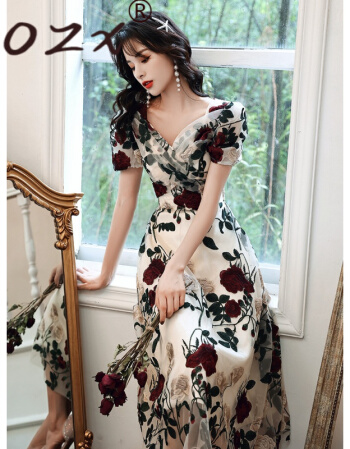O.Z.X轻奢原创女装刺绣连衣裙女2021年夏季新款宴会晚礼