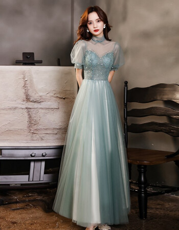 宴会晚礼服女2021新款名媛仙气高贵主持人礼服裙